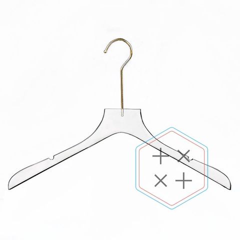 Colgador de ropa de acrílico transparente con gancho dorado de 43 cm para ropa